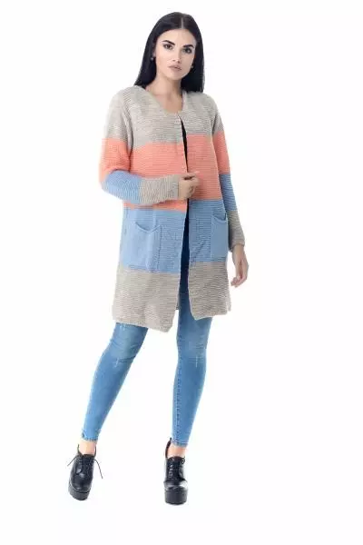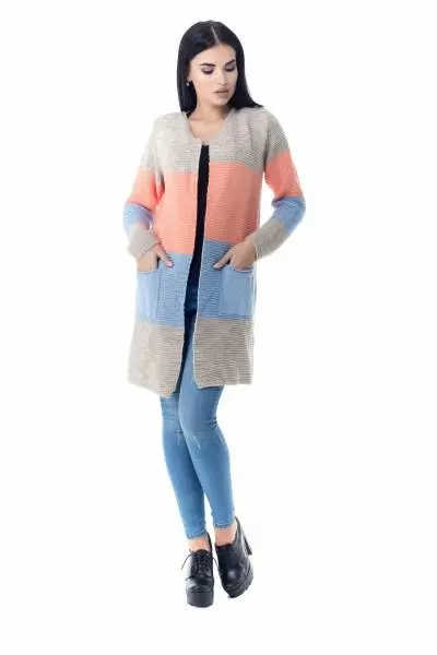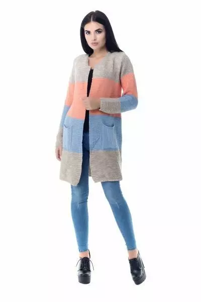 Вязанный кардиган трёхцветный с двумя карманами. Состав: Хлопок