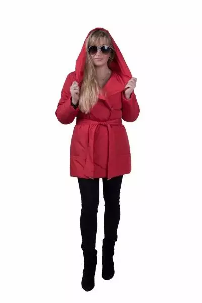 Женская осенне-весенняя куртка с поясом на синтепоне KARMEN (цвет красный)